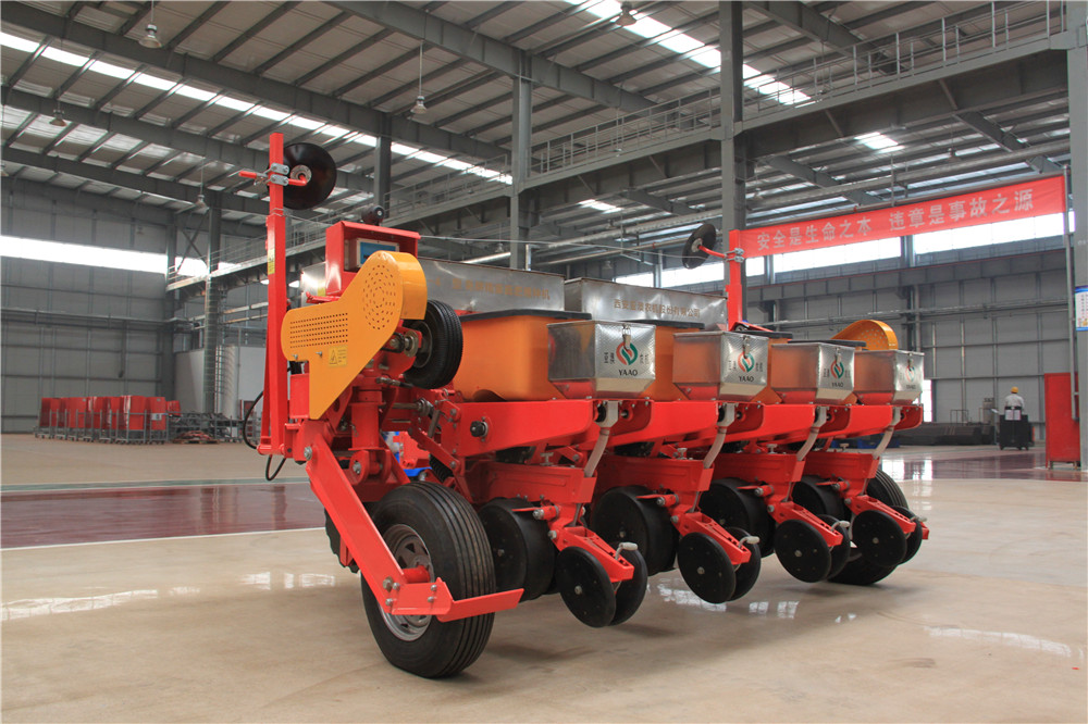 該機可以再也米稈直立地、秸稈還田地、小麥高茬浮稈地、深翻地等不同前茬條件下,一次性完成滅茬稈、開溝、播種、施肥、覆土、鎮(zhèn)壓等多道工藝。配置指甲式的玉米精量排種器與勺式的相比在同一質(zhì)量下由每小時前進5km提高到8km。底盤采用變速旋耕機,可根據(jù)拖拉機不通的前進速度和當(dāng)?shù)氐霓r(nóng)藝要求、土質(zhì)差別,靈活變換三種刀軸轉(zhuǎn)速,徹底解決了拖拉機跑的快效果差,跑的慢了效益差的問題。