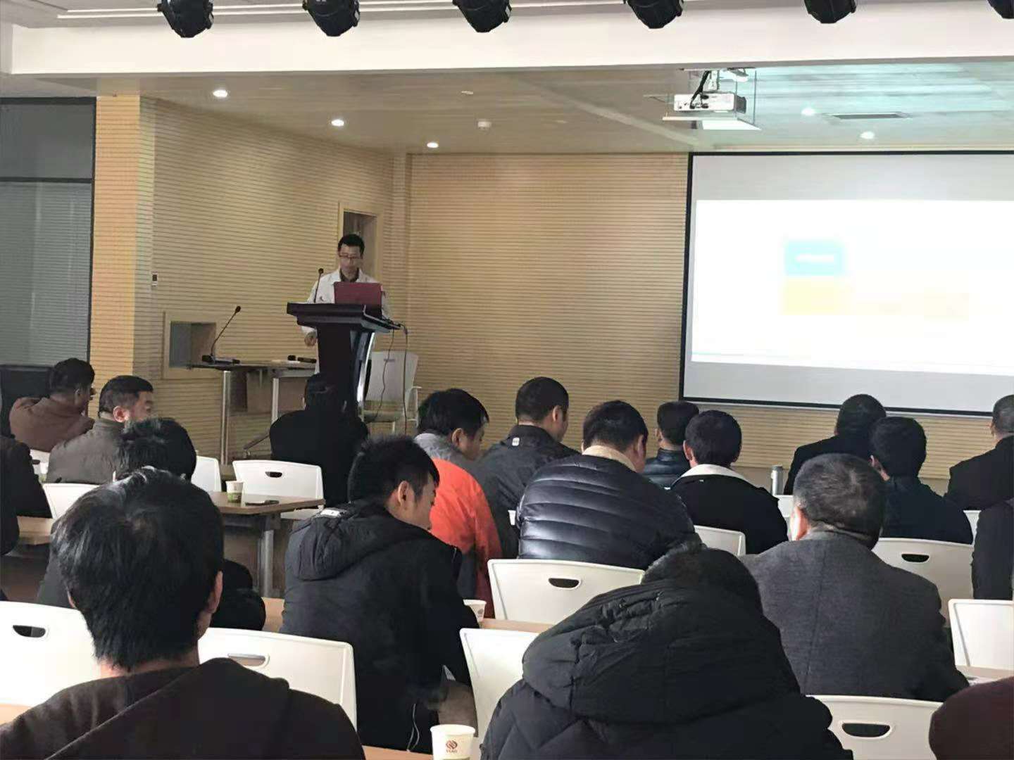 隨后一行人來到二樓多功能廳,銷售王經理詳細給大家介紹了亞澳農機的幾大系列產品:旋耕機、小麥花生精量播種施肥機、深松機及聯合耕整機。把這些機具的配套馬力、功能作用及產品特點都作了詳細的介紹。