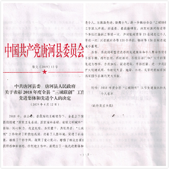 2018年,我公司緊緊圍繞創(chuàng)建“國家衛(wèi)生縣城、國家園林縣城、省級(jí)文明城市”的目標(biāo),上下一心,做好廠區(qū)環(huán)境整頓及綠化建設(shè)。獲得此項(xiàng)榮譽(yù)是縣委縣政府對(duì)我們工作的肯定。