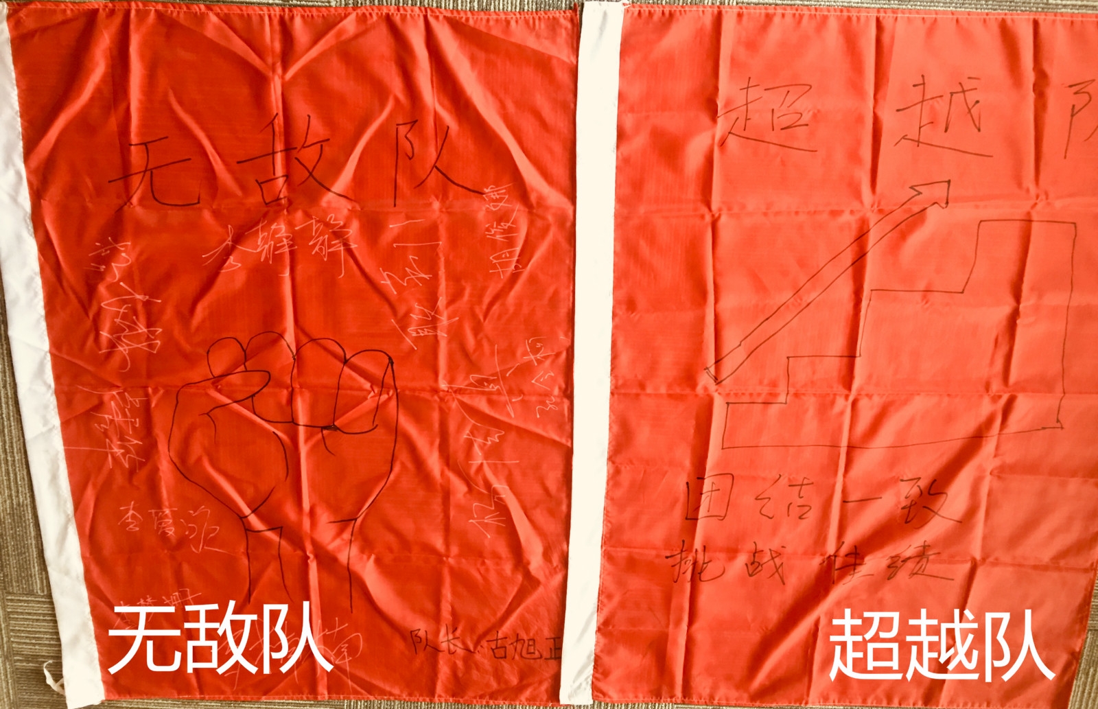 士氣展示,每組在隊長的帶領下,繪制隊旗隊呼,并列隊進行展示,在展示的過程中,在每一個隊員的配合下,整齊劃一,士氣滿滿。