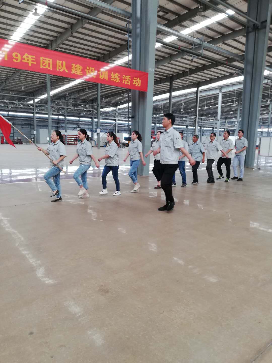 為了提高團隊協作能力,2019年6月6日亞澳農機全體員工在車間進行了團隊建設訓練活動。