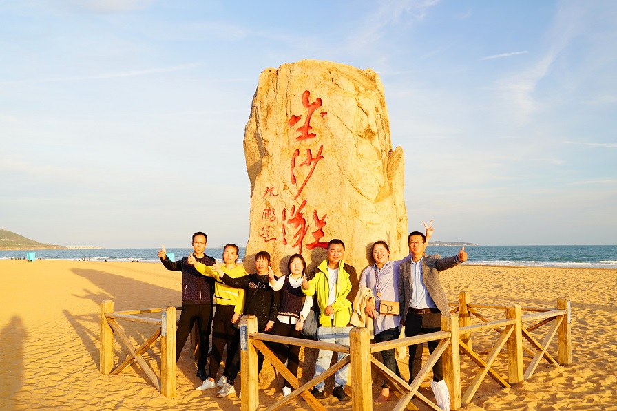 上午的參觀學習讓每一個人都長了見識,開闊了眼界。下午一行人來到了號稱“亞洲第一灘”的黃島金沙灘。黃島金沙灘位于黃海之濱,色澤如金,故稱“金沙灘”。是我國沙質最細、面積最大、風景最美的沙灘之一。