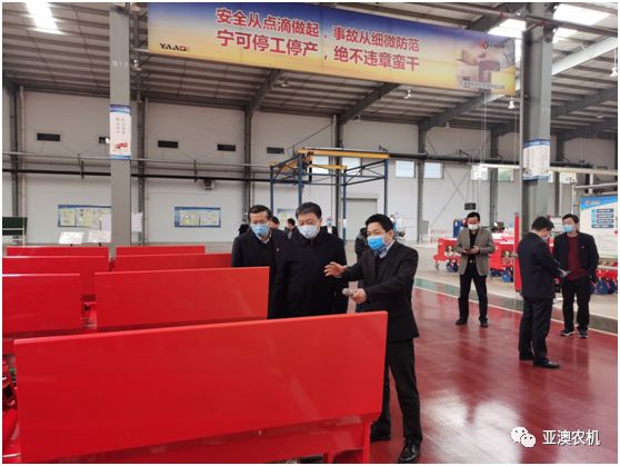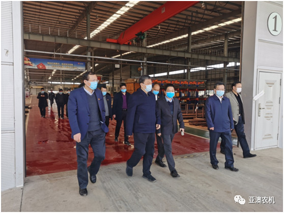 霍好勝一行在亞澳農機調研與公司總經理史炳哲進行深入交流,詳細了解疫情防控、復工進度和遇到的困難等問題,并深入生產區(qū)一線現場查看企業(yè)的生產狀況。