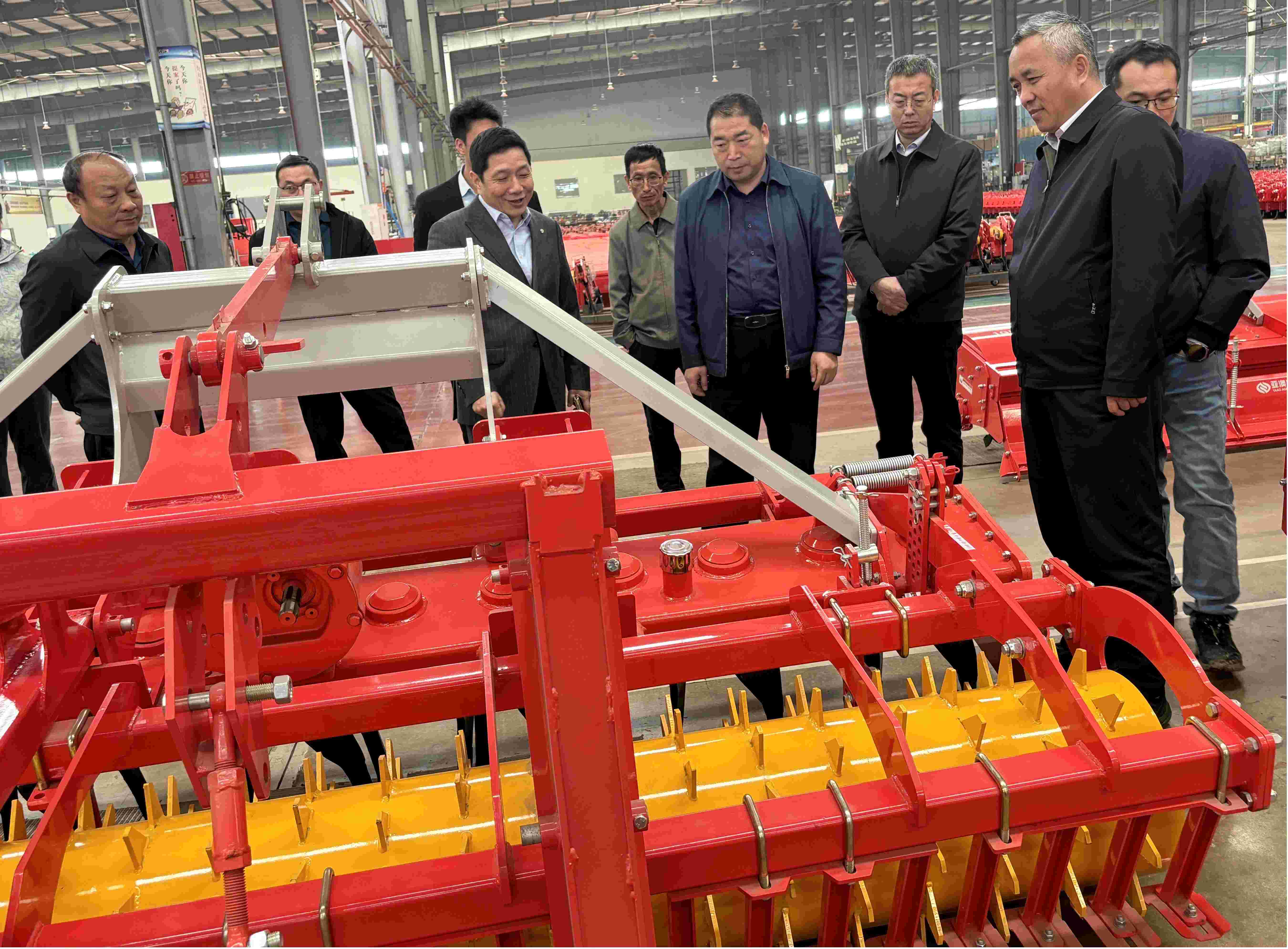 在參觀期間,史總就公司的創業成長歷程、企業文化、競爭優勢、企業發展戰略、產品研發體系等做了詳細介紹。在亞澳農機制造現場,領導一行還詳細了解玉米精量免耕播種機、氣吸式精量播種機、雙軸旋耕施肥播種機、動力驅動耙等多款機具的研發、生產情況。