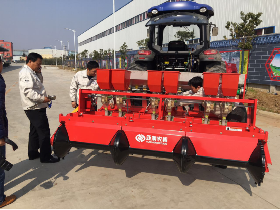 唐河縣土地面積250多萬畝,花生種植面積60多萬畝。為了推進(jìn)唐河花生種植面積能夠進(jìn)一步擴大,縣政府指示依托縣農(nóng)機產(chǎn)業(yè)園亞澳農(nóng)機生產(chǎn)、研發(fā)專門用于花生種植、收獲的機械。亞澳今天投放市場的花生精量播工作效率相當(dāng)于60人的工作量,已成為春耕的主力軍。在上屯鎮(zhèn)演示會現(xiàn)場,隆隆的機聲中,四臺不同規(guī)格的花生精量施肥播種機同時作業(yè)。所到之處,能夠一次性完成播種、施肥、起壟等多道工序,實現(xiàn)了多壟多行寬幅聯(lián)合播種作業(yè)。