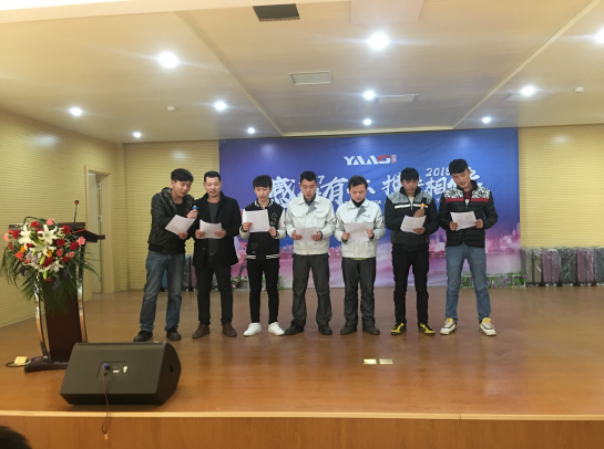 年會初始,總經理史炳哲致新年賀詞,并做了2017年年度總結,宣讀了2018年度規劃。對亞澳全體員工在過去一年中做出的努力和奉獻給予了充分的肯定和贊揚。接著由生產主管王紅衛和質檢作業長朱謹超分別為我們作了2017年工作總結及涂裝質量問題分析。最后由總經辦郭靖特助宣讀了2017年度表彰決定,對優秀員工,優秀班組、市場開發先鋒、項目申報、新產品開發等五個獎項,共15人進行了表彰。